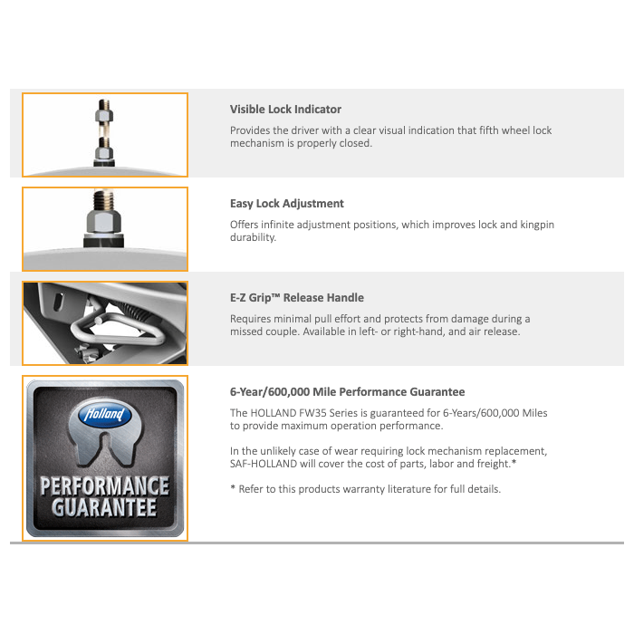 • The SAF-HOLLAND Group is one of the leading international manufacturers of chassis-related assemblies and components for trailers, trucks and buses. This Fifth Wheel is crafted after many years of improvement and represents the best of SAF-HOLLAND excellence tradition